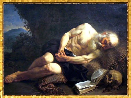 En France, pour son Anachorète endormi, Joseph-Marie Vien reprend le thème baroque de la Vanité, mais le traitement réaliste de la musculature du personnage rappelle l’art de la Renaissance…