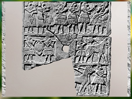 D’après une scène rituelle, le roi apporte des épis au troupeau sacré d’Inanna, sceau-cylindre et empreinte, période d’Uruk, vers 3200 avjc ; et le relief perforé dit du Nouvel-An, vers 2700 avjc, calcaire, temple ovale, Khafadje, époque des dynasties archaïques, Sumer, Irak ; Mésopotamie, Orient ancien. (Marsailly/Blogostelle)